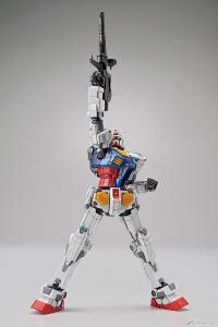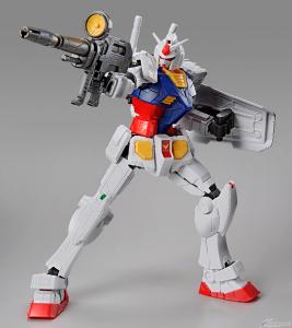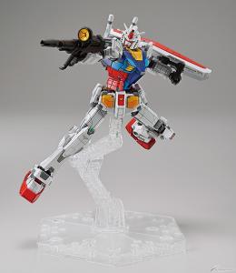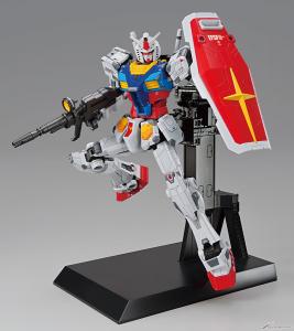 Il camminare, il braccio destro alzando, e entrambe le pose di sollevamento delle braccia eseguite dal movimento a grandezza naturale Gundam e i suoi dettagli e la combinazione di colori possono essere ricreati in scala 1/100.Adesivi foil, adesivi di marcatura, e una base di visualizzazione, rifle, e shield unico per questo kit sono inclusi anche.