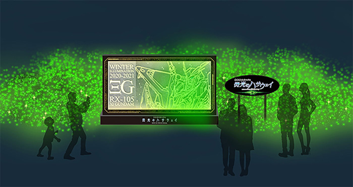 Un monumento commemorare laMobile Suit Gundam: Hathawayfilm di rilascio di venerdì, May 7, 2021 è anche su schermo intero.Il monumento è illuminato con luci verdi basate sulla XI Gundam che appare nel film, e si dice che sia la prossima grande cosa dopo Unicorn Gundam all'interno del U.C.