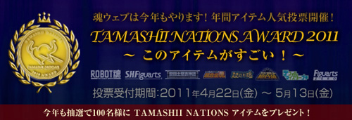 Tamashii Web is holding the 'This item is amazing!' - TAMASHII NATIONS Award 2011 poll to determine the best item released by Bandai's collectors division in 2010!