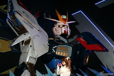絶大なインパクトで来場者を迎える「RG1/1 ZGMF-X20A ストライクフリーダムガンダム Ver.GFT」!