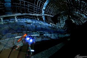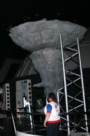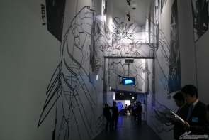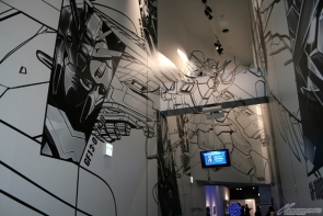 「DOME-G」へと続く通路には、両壁面に歴代ガンダムが描かれている。さらにある場所から通路を見ると巨大な「ウイングガンダムゼロ(EW版)」が浮かび上がる!