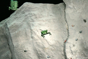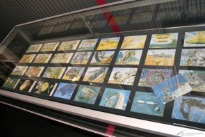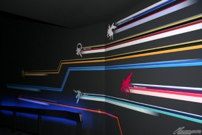 本施設の目玉の一つ「DOME-G」の前後の通路では、歴代MSの速度比べが展示されている。