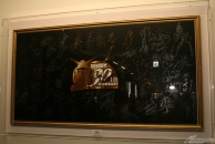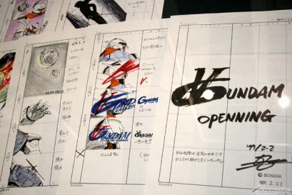 そのほか、ガンダムシリーズの歴史紹介や、実物大ガンダム立像に関連する資料、ガンダム30周年を記念して作成された著名人たちのサインが描かれたボードなどが並ぶ。