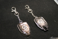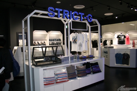 ガンダムの世界観を取り入れたメンズアパレルショップ「STRICT-G」では、アパレルアイテムのほか、ネックレスやキーホルダーなどのアクセサリーも販売する。