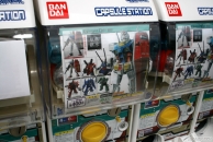 4/19(木)のオープンに向けて準備が進む物販コーナーでは、大量の限定ガンプラが来場者を待っている!