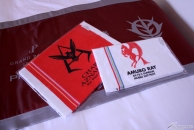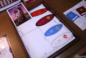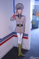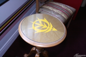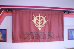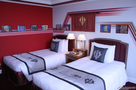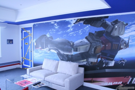 A pair of rooms based on the world of Gundam. A Federation-themed living room and Zeon-themed bedroom, both decorated with replica art and lifesized characters.