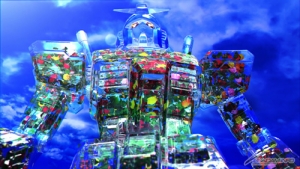 A video of Flower Gundam plays along with music by Tokyo Gundam Project 2012 theme composer Keiichiro Shibuya, illustrating the Flower Gundam worldview.
