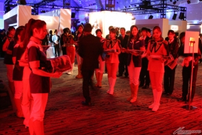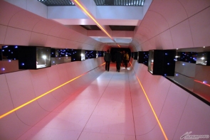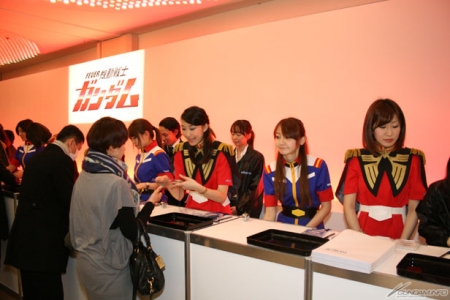 ▲会場では「アムロ」と「シャア」、それぞれの軍服を纏ったコンパニオンたちが来場者をお出迎え。まるで宇宙船のような廊下を通ると会場へとたどり着く。