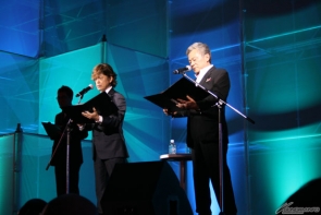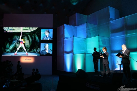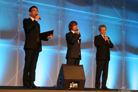 試打にさきがけておこなわれたステージでは、アムロ・レイ役の声優、古谷 徹氏と、シャア・アズナブル役の声優、池田秀一氏が登壇。