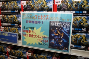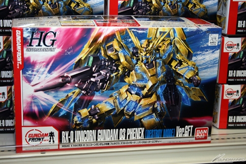 ガンダムフロント東京の無料ゾーンにある「オフィシャルショップ」では、限定ガンプラ「HGUC 1/144 ユニコーンガンダム3号機 フェネクス(デストロイモード)Ver.GFT」をはじめとした新商品の数々が本日より発売となった。