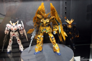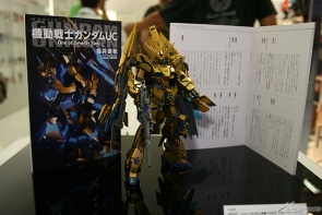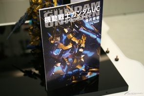 ▲「HGUC ユニコーンガンダム3号機 フェネクス(デストロイモード)Ver.GFT」の作例と、購入特典のシナリオ小冊子も展示しているぞ!