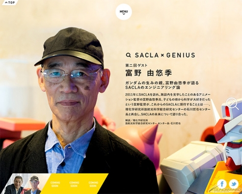 独立行政法人理化学研究所・放射光科学総合研究センターが研究を進める、X線自由電子レーザー施設「SACLA(サクラ)」のスペシャルサイトにて、富野由悠季監督をゲストに迎えたロングインタビューが掲載された。