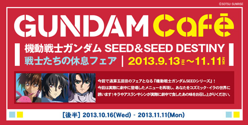 Gundam Café opens the second phase of its "Gundam SEED & Gundam SEED DESTINY: Senshi no Kyusoku Fair" October 16th with a new, expanded menu at its three capital area locations.