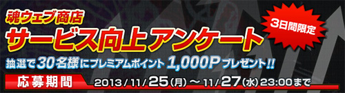 バンダイ公式ショッピングサイト・プレミアムバンダイの「魂ウェブ商店」では、本日11月25日(月)から27日(水)までの3日間限定でサービス向上アンケートを実施中だ。