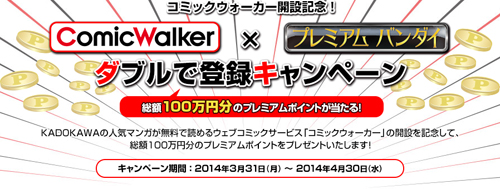 総額100万円分のポイントが当たる!「ComicWalker×プレミアムバンダイ ダブルで登録キャンペーン」実施中