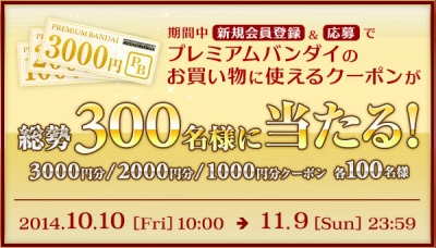プレミアムバンダイのお買い物で使えるクーポン … 合計300名