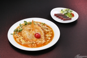 Price: ¥880 (tax not included) A young aristocrat in red hides all behind a mask, faring the star ocean with only his own genius to aid him. Some day, he would take the name of the "Red Comet", and become a revolutionary without peer—but not yet. ■ A nourishing tomato risotto with a variety of veggies. Meaty "Salamis" add to the balance of the dish. |