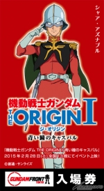 Admission tickets for Gundam Front Tokyo, on the seventh floor of Diver City Tokyo Plaza, now feature Mobile Suit Gundam The Origin I: Blue-Eyed Casval designs to celebrate its February 28th release!