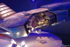 ▲ A life-sized Core Fighter, photo opportunities, and a look at how Gunpla are made! The shop has great souvenirs like the Beargguy III plush cushion!