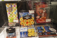 Four types of exclusive Gunpla are just the beginning of the selection at the gift shop. Themed snacks like 1/60-scale Beam Saber Pocky and "Gundam Kaki-no-SEED" kaki-no-tani make great gifts.