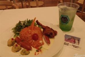 Since last October, it's been outfitted as part of the "McDaniel Hamburgers" chain seen in Mobile Suit Zeta Gundam. Choose from the summer-only G-COOLS menu, a special The Art of Gundam menu, or more!