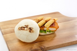 ■ヤングコーンと若鶏のチキンカツをオリジナルバンズでサンド。