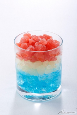 ■いちご味、グレープフルーツ味のクラッシュアイス&ブルーキュラソーソーダ 。