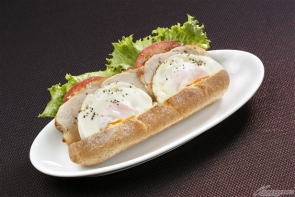 【左・お台場】ドン・テアボロの愛情ドッグ ~スモークチキンと目玉焼きのライ麦パンドッグ~