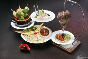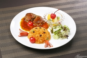 Gundam Square's cafe is a full Gundam Cafe location, the first in Osaka. Choose from the standard menu available at all locations or Osaka favorites like okonomiyaki and takoyaki. The Char's Zaku Rice, a favorite at the three full locations in Tokyo, is serves in five sizes, from 90g to 1350g of rice.