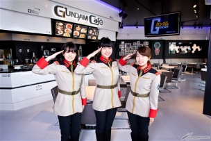 ? The cafe staff includes a lineup of Gundam fans! Gundam characters will even appear to show you around!