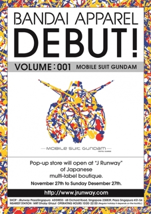 The Southeast Asian e-commerce side Shop.JRunway features a lineup including Gundam-inspired fans, T-shirts, shorts, caps, and more. A popup store will be open 27 November through 27 December on Singapore's Orchard Road. See them in person before you buy!