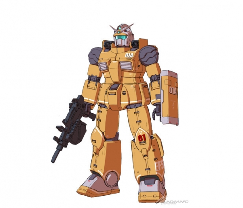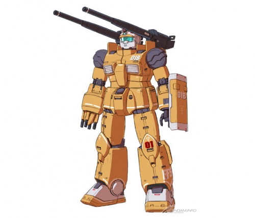 RCX-76-01B’s body is a prototype, which is equipped with a long-range supporting tool. On both shoulders’ armed platform rest heavy caliber guns, while the right arm hosts a quadruple mount machine gun, useful in short-range battles. A cockpit was installed on the head of RCX-76-01B, allowing a gunner to get inside and control the firearms. The control panel for the body appears on the side of the abdomen. The recoil the body withstood upon firing its heavy caliber guns during the shooting test was larger than expected. This shelved the use of those on the Guncannon first type.