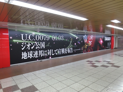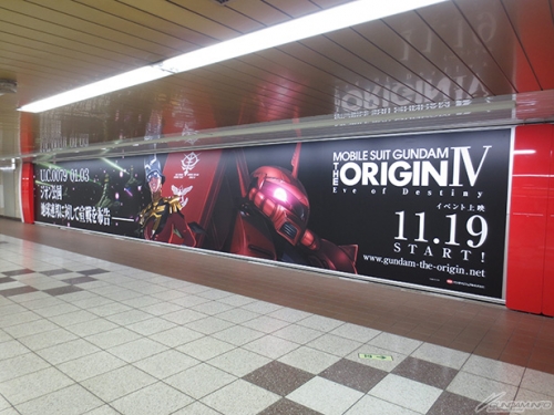 In celebration of the movie release with the screening starting from this weekend (November 19th, Saturday), a big poster for “Mobile Suit Gundam THE ORIGIN IV Eve of Destiny” will be at the Shinjuku station for a limited time, situated in the subway walkway “Metro Promenade” of the of the Tokyo Metro Marunouchi Line.