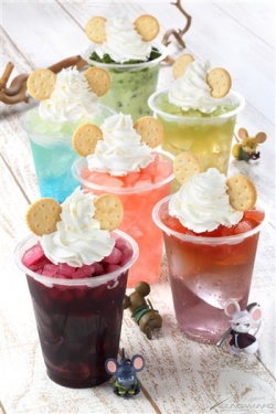 [Right] Ice de Chu (Orga) ~Strawberry & Salted Lychee Soda~ Price: 594 yen (tax included)