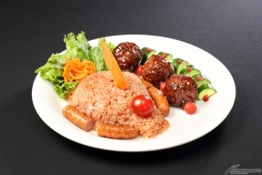 [Left] You Who Lays Space to Waste ~Char’s Zaku Rice and Chinese-style Meatball Plate~ Price: 1,296 yen (tax included)