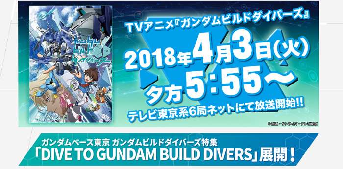 Dotato di \"DIVE per GUNDAM compilare DIVERS\" Compilazione di Gundam Divers sarà aperto presso il centro di Gunpla il GUNDAM BASE TOKYO a partire dal 8 aprileth (Sole). L'ingresso è gratuito.