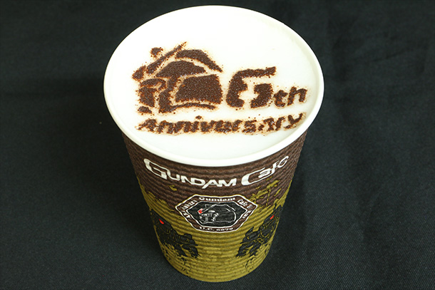 A partire da 19 aprile Gundam ufficiale café \"Odaiba Gundam Cafe\", un caffellatte per commemorare il 6 ° anniversario è disponibile per un tempo limitato. Il prezzo è 464 yen (tasse incluse).