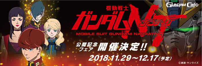 Presso il caffè ufficiale di Gundam "Gundam Cafe" Akihabara e Odaiba, e "Piazza di Gundam" a Osaka, il "Mobile Suit Gundam NT Teatro apertura fiera commemorativa" inizierà il 29 novembre, 2018 (Gio.)