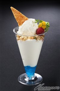 ・Popcorn e gelato alla vaniglia crema piatto gelato salato parfait e ramune