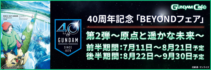 In ogni caffè ufficiale di Gundam "Gundam Cafe" e "Piazza Gundam" a Osaka, a partire dall'11 luglio, 2019 (Thu), "Mobile Suit Gundam 40a Commemorativa BEYOND Fair Vol. 2 Il nome del sistema ~Origine e futuro lontano" si terrà.