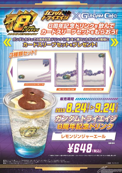 Ad ogni caffè ufficiale Gundam "Gundam Cafe, e "Piazza Gundam" a Osaka, la bevanda commemorativa dell'ottavo anniversario per il gioco di carte digitali attualmente popolare "Gundam Prova-età" apparirà il 24 agosto, 2019 (esami attitudinali per l'iscrizione all'università).