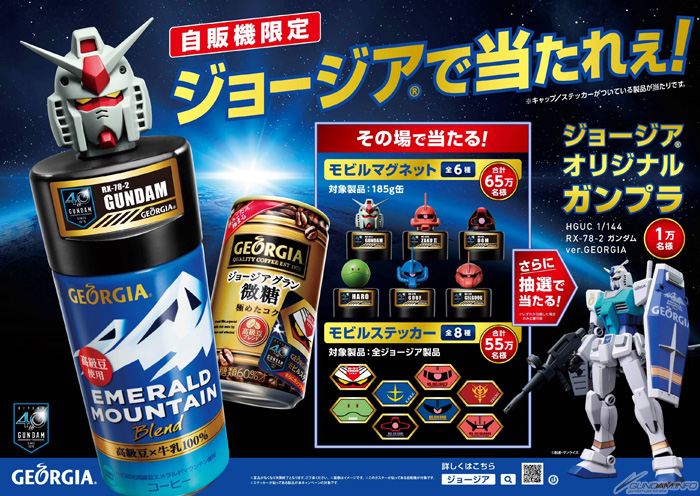 Le "Vinci con la Georgia! Vinci la campagna Georgia Original Gundam" avviato il 2 settembre, 2019 (Lu). Quando si acquistano prodotti idonei della Georgia dai distributori automatici a livello nazionale, si avrà la possibilità di vincere un "Magnete mobile" o "Adesivo Mobile, con un totale di 1.2 milioni di persone che vincono sul posto