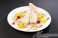 ・Torta di rotolo di vaniglia salata e piatto di frutta