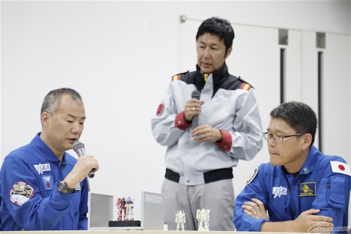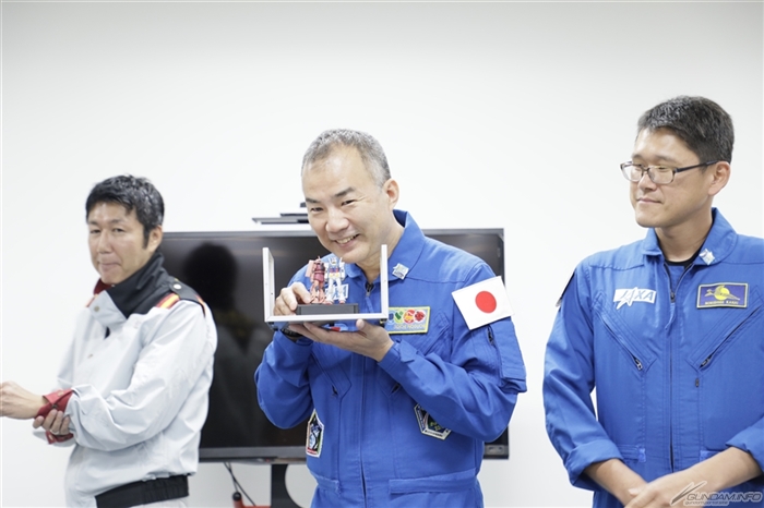 ▲L'astronauta Soichi Noguchi, Satellitare-Gunpla Supervisore di produzione montato Nobuhiro Yamanaka, Astronauta Norishige Kanai