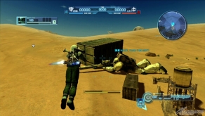 | MS撃破時のアシスト実装 | βテストでは、トドメをさしたプレイヤーのみ戦果を取得していたが、撃破されたMSに一定以上のダメージを与えた複数のプレイヤーにも「アシスト」として、戦果ポイントを得られるようになる。 撃破MSに対し、アシスト者が多いほど総合的にチームで得られる戦果ポイントが増すので、敵に対しては可能な限り複数人で攻撃をおこなった方が有利。 逆に単独行動で複数の敵に囲まれると失点が増すので、チームでの連携の重要性が増すこととなる。 |