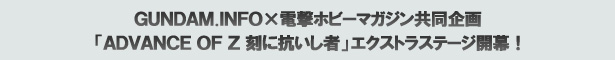 いよいよスタートした「A.O.Z 刻に抗いし者」番外編『審判のメイス』の見所を一挙紹介。 シーン再現CGでは、新たなる主役機「グリンブルスティ」と「シュツルム・ディアス」の 白熱の戦闘シーンを掲載する。 |
