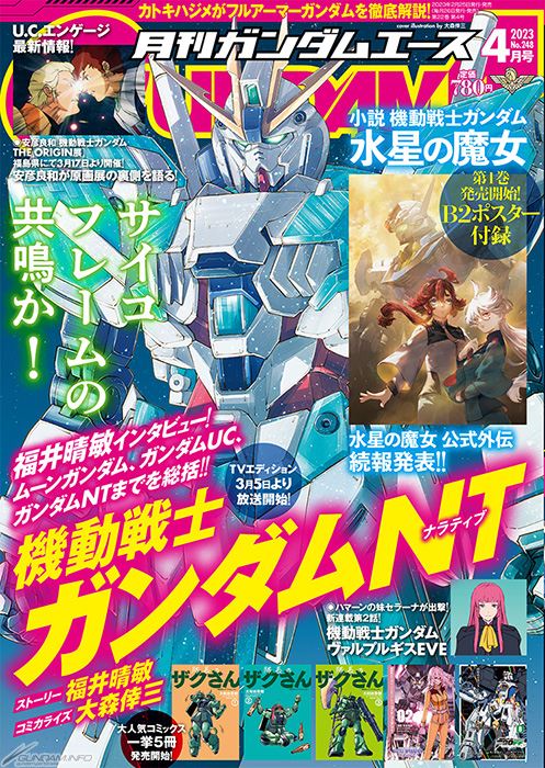Monthly GUNDAM, un numero di aprile 2023 che include un poster di dimensioni B2 del romanzo adattamento della strega di MERCURY in vendita oggi!