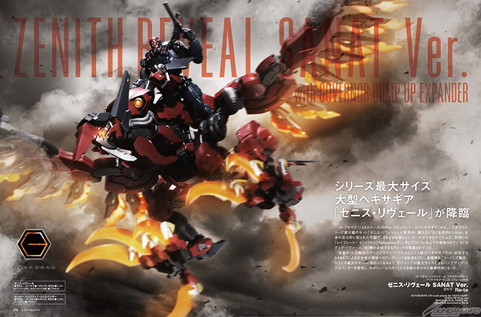 Presentazione dello Zenith Reveal SANAT Ver. della serie di blocchi in scala 1/24 di Kotobukiya Hexa Gear! Questo modello è stato creato dal modellatore professionista Re-ta. Il kit è originariamente un Hexa Gear blu e bianco realizzato da Earthcline Biomechanics, ma ha ricevuto un cambio di colore e modifiche, che lo fanno assomigliare a una macchina rossa catturata dal loro rivale SANAT.