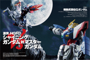 | Feature 2: Clashing HGFC! Shining Gundam vs. Master Gundam! Mobile Fighter G Gundam HGFC's newest entries, the 'Shining Gundam' and the 'Master Gundam! & Fu'un Saiki' 'Let's remake the duel between master and student!' is on everyone's mind, but the set also includes the first plastic model of Master Gundam's steed Fu'un Saiki! Not only do we review these kits, we also bring you a HGFC-style Rising Gundam build! |