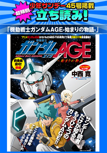 The first chapter of Mobile Suit Gundam AGE: Hajimari no Monogatari, published in Shonen Sunday issue 45, is now available on the Corocoro website.